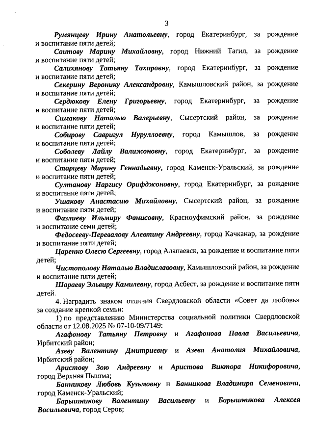 Указ Губернатора Свердловской области от 07.10.2025 N 391-УГ "О награждении знаками отличия Свердловской области"