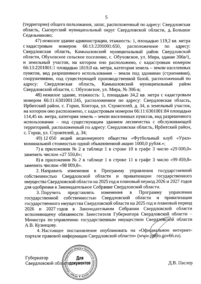 Постановление Правительства Свердловской области от 23.10.2025 N 554-ПП "О внесении изменений в Программу управления государственной собственностью Свердловской области и приватизации государственного имущества Свердловской области на 2025 год и плановый период 2026 и 2027 годов, утвержденную Постановлением Правительства Свердловской области от 24.10.2024 N 729-ПП"