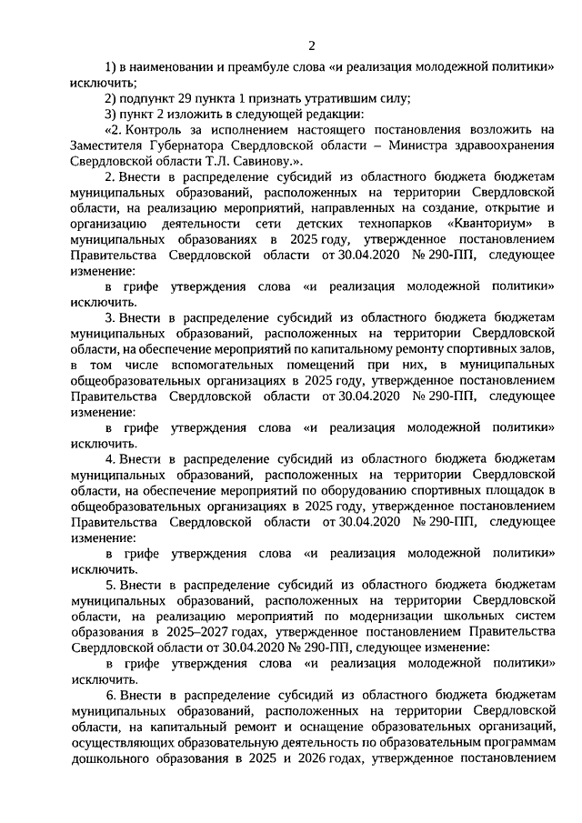 Постановление Правительства Свердловской области от 23.10.2025 N 558-ПП "О внесении изменений в Постановление Правительства Свердловской области от 30.04.2020 N 290-ПП "О распределении субсидий из областного бюджета бюджетам муниципальных образований, расположенных на территории Свердловской области, в рамках реализации государственной программы Свердловской области "Развитие системы образования и реализация молодежной политики в Свердловской области"