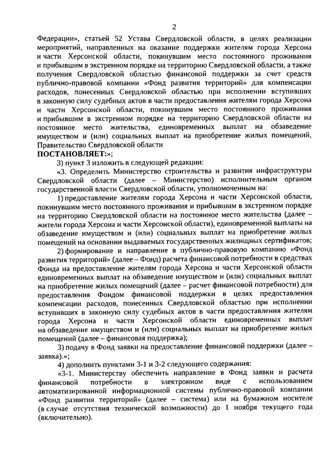 Постановление Правительства Свердловской области от 30.10.2025 N 578-ПП "О внесении изменений в Постановление Правительства Свердловской области от 01.12.2022 N 824-ПП "О мерах социальной поддержки жителей города Херсона и части Херсонской области, покинувших место постоянного проживания и прибывших в экстренном порядке на территорию Свердловской области на постоянное место жительства"