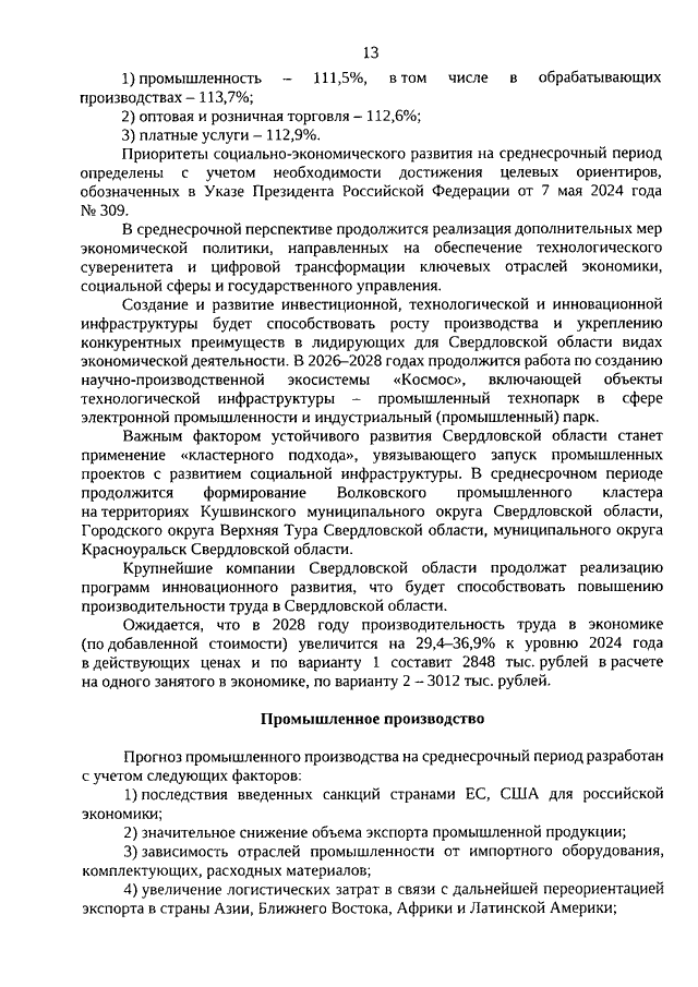 Постановление Правительства Свердловской области от 30.10.2025 N 579-ПП "Об одобрении прогноза социально-экономического развития Свердловской области на среднесрочный период 2026 - 2028 годов"