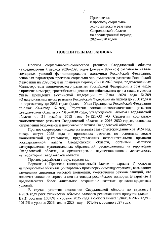 Постановление Правительства Свердловской области от 30.10.2025 N 579-ПП "Об одобрении прогноза социально-экономического развития Свердловской области на среднесрочный период 2026 - 2028 годов"