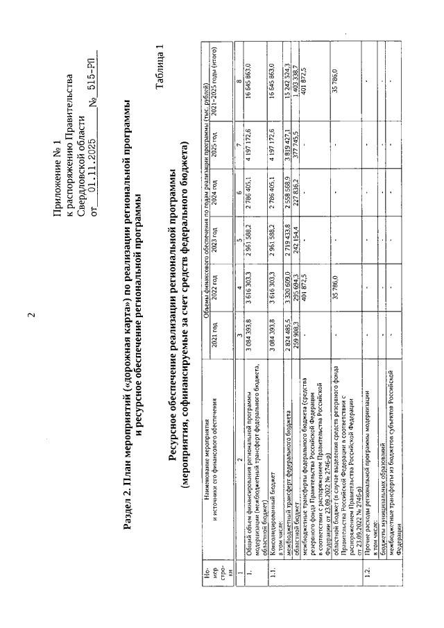 Распоряжение Правительства Свердловской области от 01.11.2025 N 515-РП "О внесении изменений в Распоряжение Правительства Свердловской области от 16.12.2020 N 686-РП "Об утверждении региональной программы Свердловской области "Модернизация первичного звена здравоохранения Свердловской области"