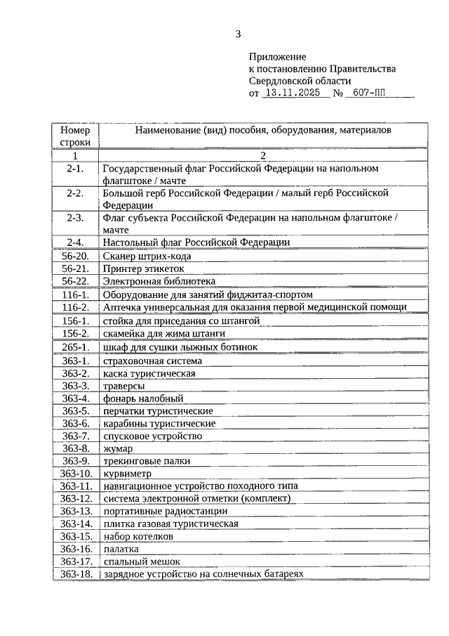 Постановление Правительства Свердловской области от 13.11.2025 N 607-ПП "О внесении изменений в Постановление Правительства Свердловской области от 18.12.2013 N 1540-ПП "Об утверждении Перечня учебных пособий, средств обучения, игр, игрушек, приобретаемых за счет субвенций, субсидий из областного бюджета для реализации основных общеобразовательных программ в муниципальных образовательных организациях, расположенных на территории Свердловской области"