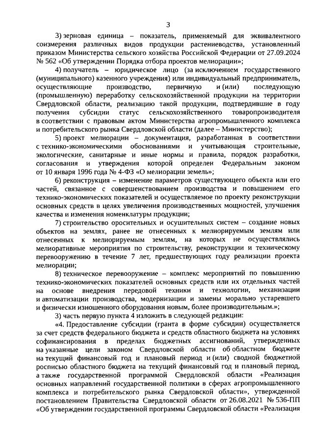 Постановление Правительства Свердловской области от 13.11.2025 N 612-ПП "О внесении изменений в Постановление Правительства Свердловской области от 23.04.2014 N 330-ПП "Об утверждении Порядка предоставления субсидий на проведение гидромелиоративных, культуртехнических, агролесомелиоративных и фитомелиоративных мероприятий, а также мероприятий в области известкования кислых почв на пашне"