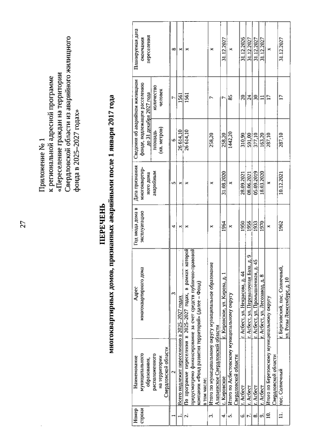 Постановление Правительства Свердловской области от 20.11.2025 N 630-ПП "О внесении изменений в Постановление Правительства Свердловской области от 11.09.2025 N 504-ПП "Об утверждении региональной адресной программы "Переселение граждан на территории Свердловской области из аварийного жилищного фонда в 2025 и 2026 годах"
