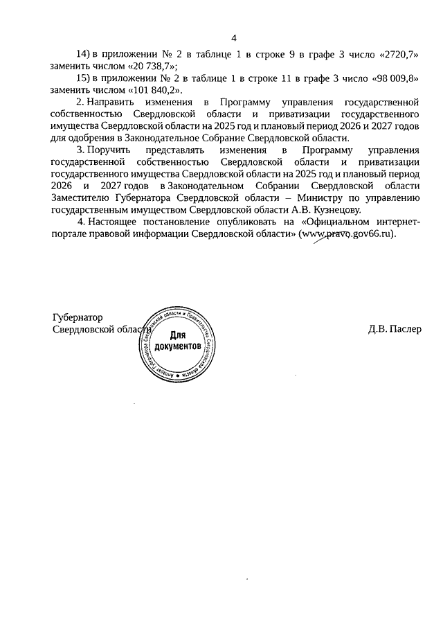 Постановление Правительства Свердловской области от 26.11.2025 N 636-ПП "О внесении изменений в Программу управления государственной собственностью Свердловской области и приватизации государственного имущества Свердловской области на 2025 год и плановый период 2026 и 2027 годов, утвержденную Постановлением Правительства Свердловской области от 24.10.2024 N 729-ПП"