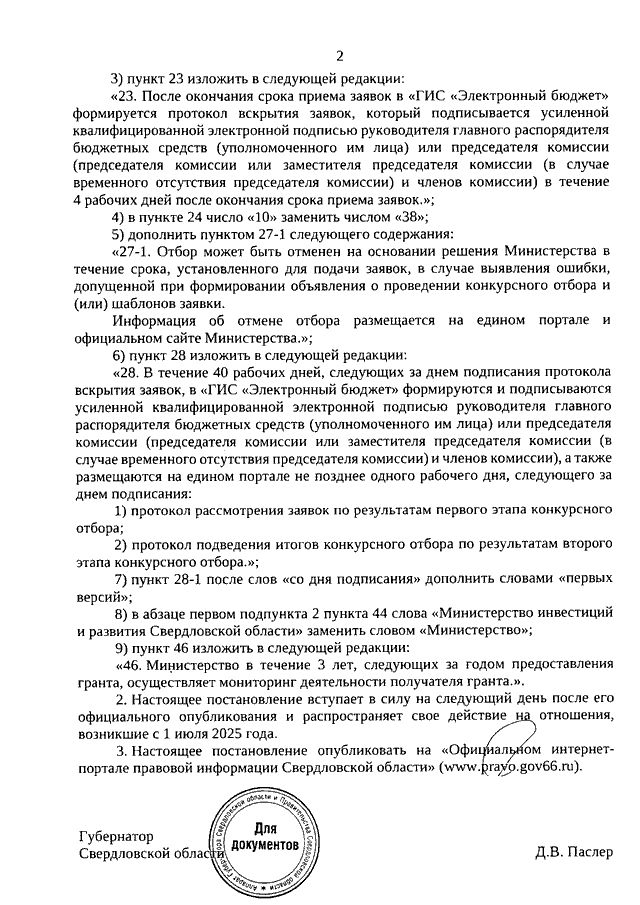 Постановление Правительства Свердловской области от 26.11.2025 N 639-ПП "О внесении изменений в Порядок предоставления грантов в форме субсидий социальным предприятиям на реализацию проектов в сфере социального предпринимательства и (или) субъектам малого и среднего предпринимательства, созданным физическими лицами до 25 лет включительно, на реализацию проектов в сфере предпринимательской деятельности, утвержденный Постановлением Правительства Свердловской области от 08.09.2021 N 552-ПП"