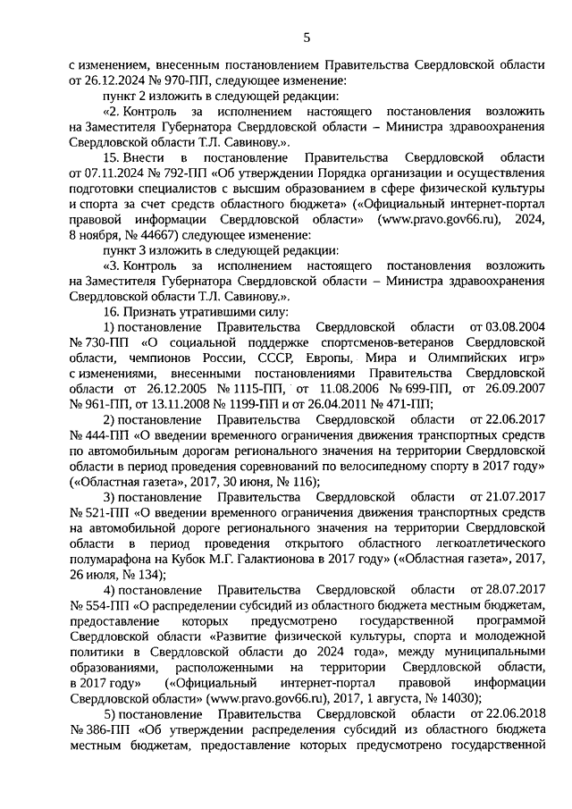 Постановление Правительства Свердловской области от 15.01.2026 N 10-ПП "О внесении изменений в отдельные Постановления Правительства Свердловской области и признании утратившими силу отдельных постановлений Правительства Свердловской области в сфере физической культуры и спорта"