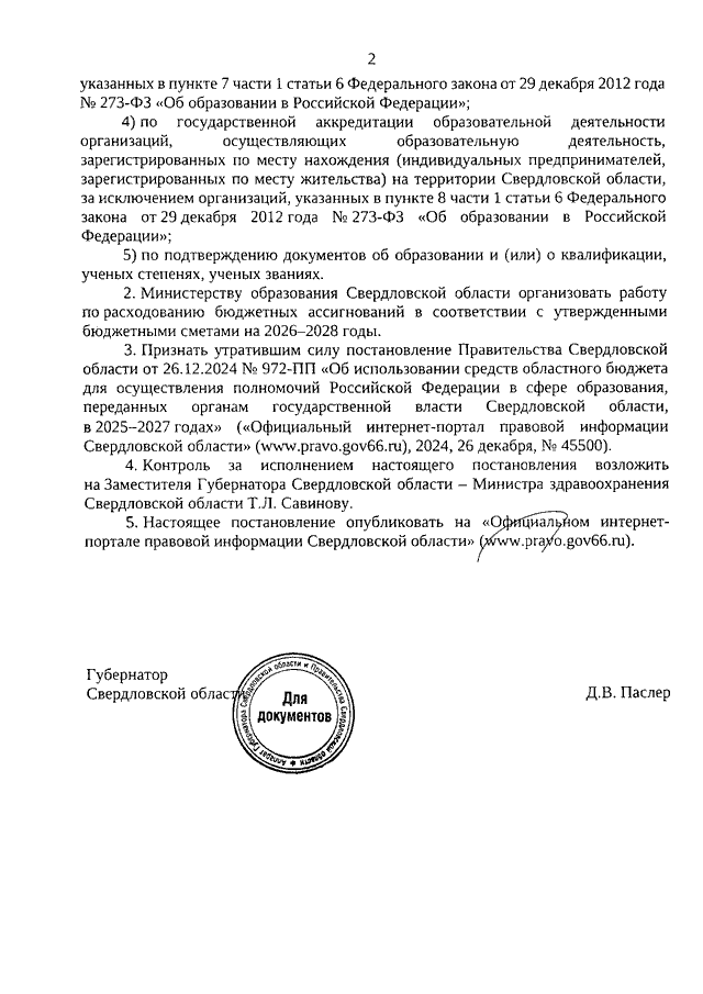 Постановление Правительства Свердловской области от 15.01.2026 N 3-ПП "Об использовании средств областного бюджета для осуществления полномочий Российской Федерации в сфере образования, переданных органам государственной власти Свердловской области, в 2026 - 2028 годах"