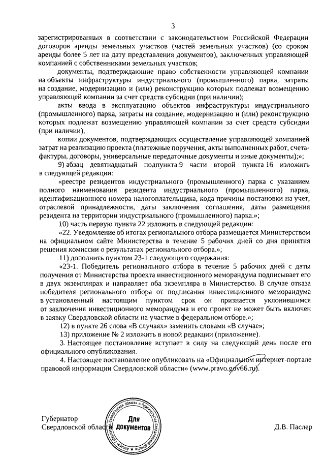 Постановление Правительства Свердловской области от 15.01.2026 N 7-ПП "О внесении изменений в Постановление Правительства Свердловской области от 03.10.2024 N 697-ПП "О проведении регионального отбора проектов по созданию, увеличению площади или реиндустриализации индустриальных (промышленных) парков"