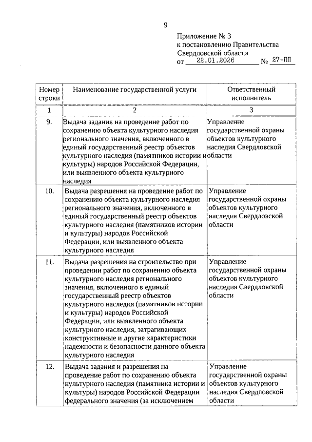 Постановление Правительства Свердловской области от 22.01.2026 N 27-ПП "О внесении изменений в Постановление Правительства Свердловской области от 27.11.2020 N 852-ПП "О государственных услугах, предоставляемых исполнительными органами государственной власти Свердловской области, территориальными государственными внебюджетными фондами Свердловской области в государственном бюджетном учреждении Свердловской области "Многофункциональный центр предоставления государственных и муниципальных услуг", в том числе посредством комплексного запроса, примерном перечне муниципальных услуг, предоставляемых по принципу "одного окна" в многофункциональных центрах предоставления государственных и муниципальных услуг, и признании утратившим силу Постановления Правительства Свердловской области от 25.09.2013 N 1159-ПП "О перечне государственных услуг, предоставляемых органами государственной власти Свердловской области, территориальными государственными внебюджетными фондами Свердловской области в государственном бюджетном учреждении Свердловской области "Многофункциональный центр предоставления государственных и муниципальных услуг"
