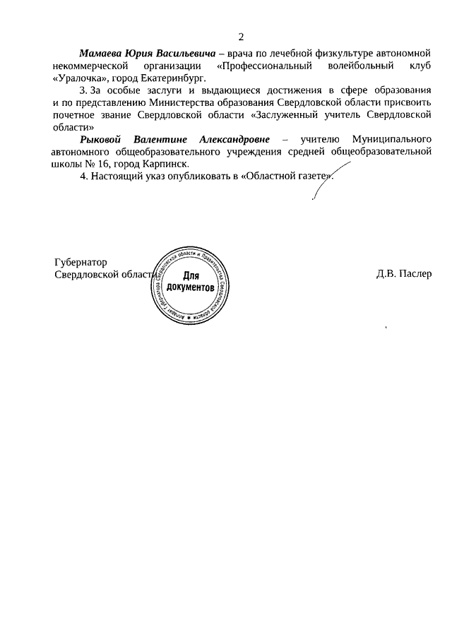 Указ Губернатора Свердловской области от 26.01.2026 N 20-УГ "О награждении знаками отличия Свердловской области и присвоении почетного звания Свердловской области"