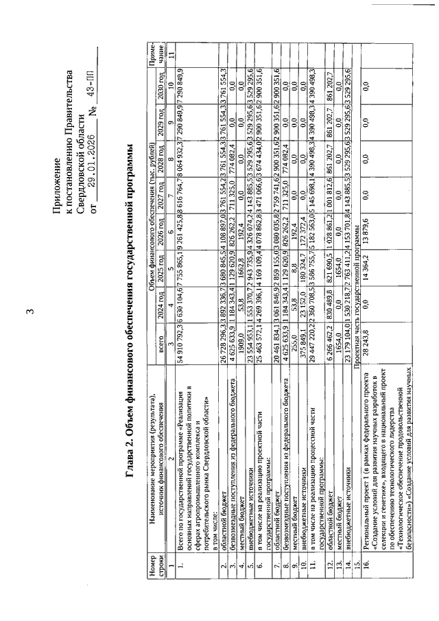 Постановление Правительства Свердловской области от 29.01.2026 N 43-ПП "О внесении изменений в государственную программу Свердловской области "Реализация основных направлений государственной политики в сферах агропромышленного комплекса и потребительского рынка Свердловской области", утвержденную Постановлением Правительства Свердловской области от 26.08.2021 N 536-ПП"