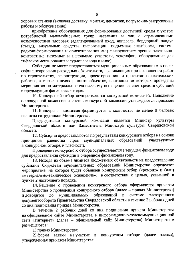 Постановление Правительства Свердловской области от 29.01.2026 N 46-ПП "Об утверждении порядков предоставления и распределения отдельных субсидий из областного бюджета бюджетам муниципальных образований, расположенных на территории Свердловской области, в сфере культуры" (вместе с "Порядком предоставления и распределения субсидий из областного бюджета бюджетам муниципальных образований, расположенных на территории Свердловской области, на ремонт и (или) материально-техническое оснащение филармоний на условиях софинансирования из федерального бюджета", "Порядком предоставления и распределения субсидий из областного бюджета бюджетам муниципальных образований, расположенных на территории Свердловской области, на модернизацию музеев на условиях софинансирования из федерального бюджета", "Порядком предоставления и распределения субсидий из областного бюджета бюджетам муниципальных образований, расположенных на территории Свердловской области, на модернизацию учреждений культурно-досугового типа в населенных пунктах с численностью до 500 тысяч человек на условиях софинансирования из федерального бюджета", "Порядком предоставления и распределения субсидий из областного бюджета бюджетам муниципальных образований, расположенных на территории Свердловской области, на создание детских культурно-просветительских центров на базе учреждений культуры на условиях софинансирования из федерального бюджета", "Порядком предоставления и распределения субсидий из областного бюджета бюджетам муниципальных образований, расположенных на территории Свердловской области, по итогам проведения ежегодного Всероссийского конкурса среди библиотек для выявления лучших практик их работы на условиях софинансирования из федерального бюджета", "Порядком предоставления и распределения субсидий из областного бюджета бюджетам муниципальных образований, расположенных на территории Свердловской области, по итогам проведения ежегодного Всероссийского конкурса среди домов культуры для выявления лучших практик их работы на условиях софинансирования из федерального бюджета", "Порядком предоставления субсидии из областного бюджета бюджету Городского округа "город Ирбит" Свердловской области на завершение работ по сохранению объекта культурного наследия регионального значения "Здание драматического театра им. А.Н. Островского")