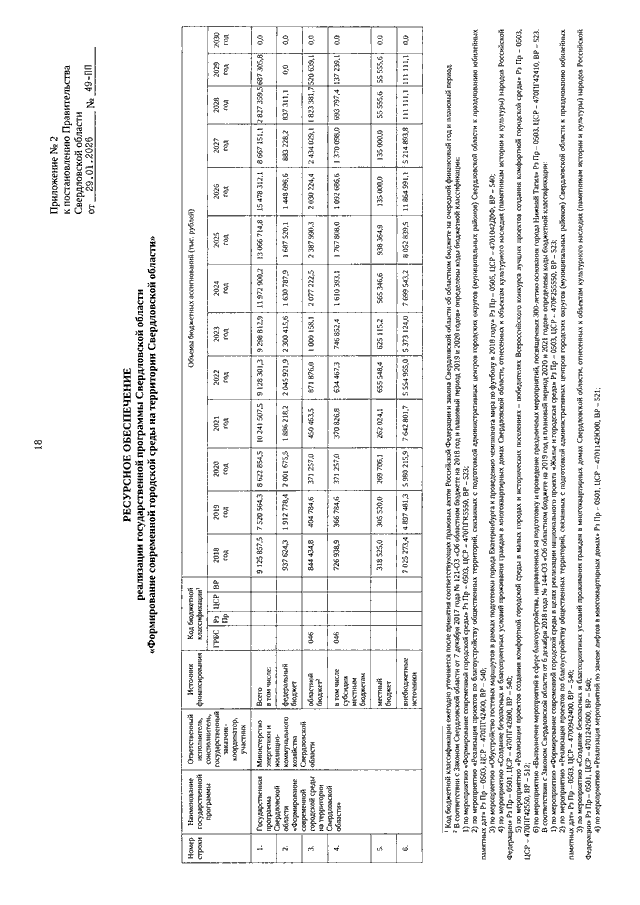 Постановление Правительства Свердловской области от 29.01.2026 N 49-ПП "О внесении изменений в государственную программу Свердловской области "Формирование современной городской среды на территории Свердловской области", утвержденную Постановлением Правительства Свердловской области от 31.10.2017 N 805-ПП"