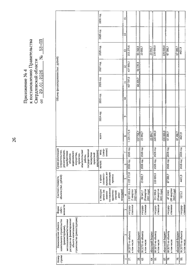 Постановление Правительства Свердловской области от 29.01.2026 N 53-ПП "О внесении изменений в государственную программу Свердловской области "Развитие транспортного комплекса Свердловской области", утвержденную Постановлением Правительства Свердловской области от 25.01.2018 N 28-ПП"