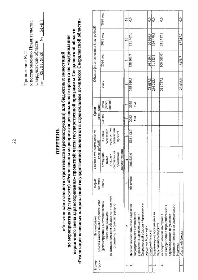 Постановление Правительства Свердловской области от 29.01.2026 N 54-ПП "О внесении изменений в государственную программу Свердловской области "Реализация основных направлений государственной политики в строительном комплексе Свердловской области", утвержденную Постановлением Правительства Свердловской области от 24.10.2013 N 1296-ПП"
