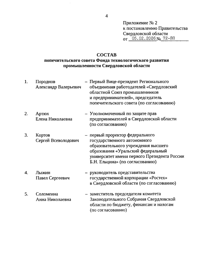 Постановление Правительства Свердловской области от 05.02.2026 N 72-ПП "О внесении изменений в Постановление Правительства Свердловской области от 02.12.2016 N 847-ПП "О Фонде технологического развития промышленности Свердловской области"