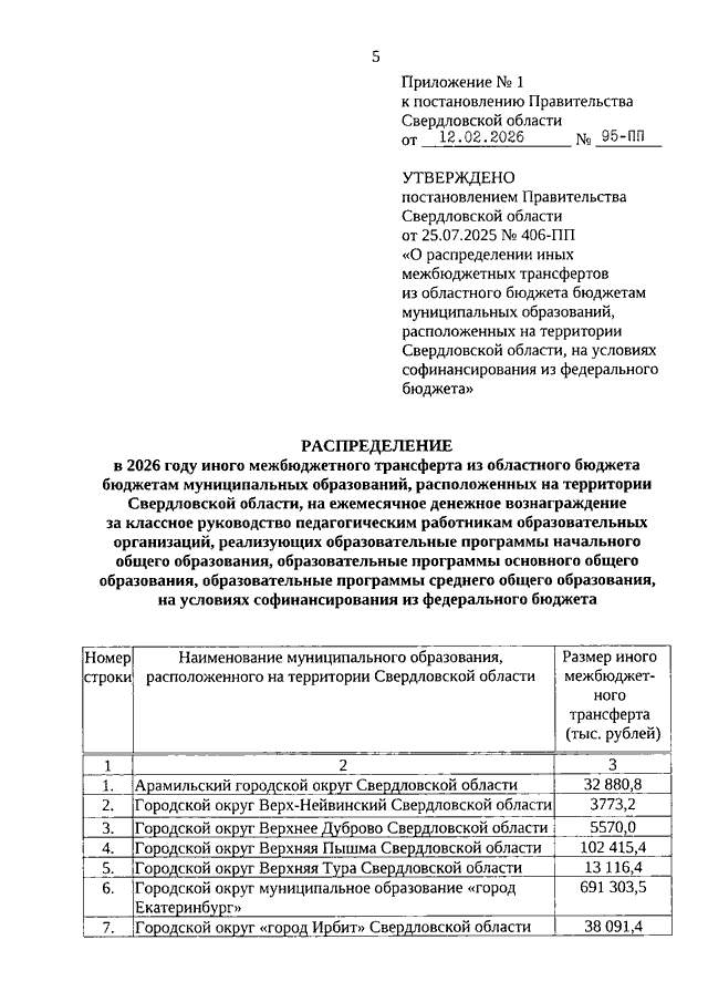 Постановление Правительства Свердловской области от 12.02.2026 N 95-ПП "О внесении изменений в отдельные постановления Правительства Свердловской области, регулирующие отношения в сфере образования"