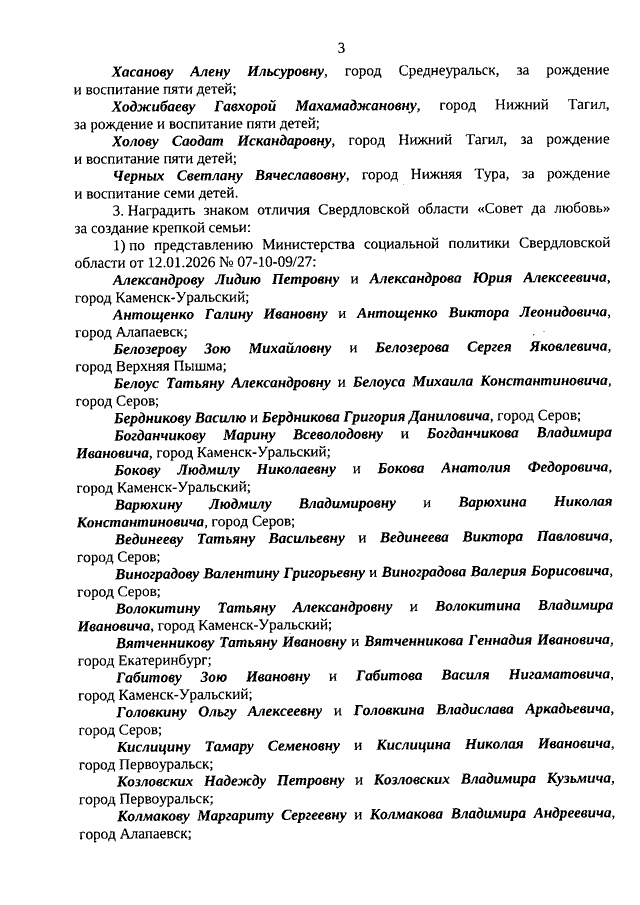 Указ Губернатора Свердловской области от 27.02.2026 N 73-УГ "О награждении знаками отличия Свердловской области"