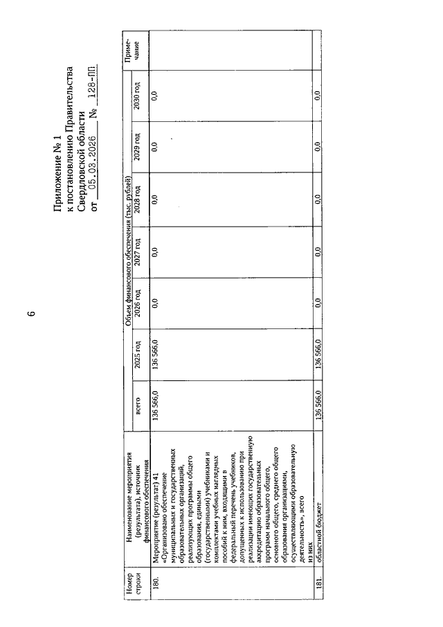 Постановление Правительства Свердловской области от 05.03.2026 N 128-ПП "О внесении изменений в государственную программу Свердловской области "Развитие системы образования в Свердловской области", утвержденную Постановлением Правительства Свердловской области от 19.12.2019 N 920-ПП"