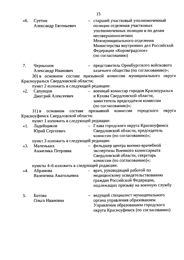 Указ Губернатора Свердловской области от 06.03.2026 N 85-УГ "О внесении изменений в составы призывных комиссий (основные и резервные) в муниципальных районах, муниципальных и городских округах, расположенных на территории Свердловской области, утвержденные Указом Губернатора Свердловской области от 24.09.2025 N 366-УГ"