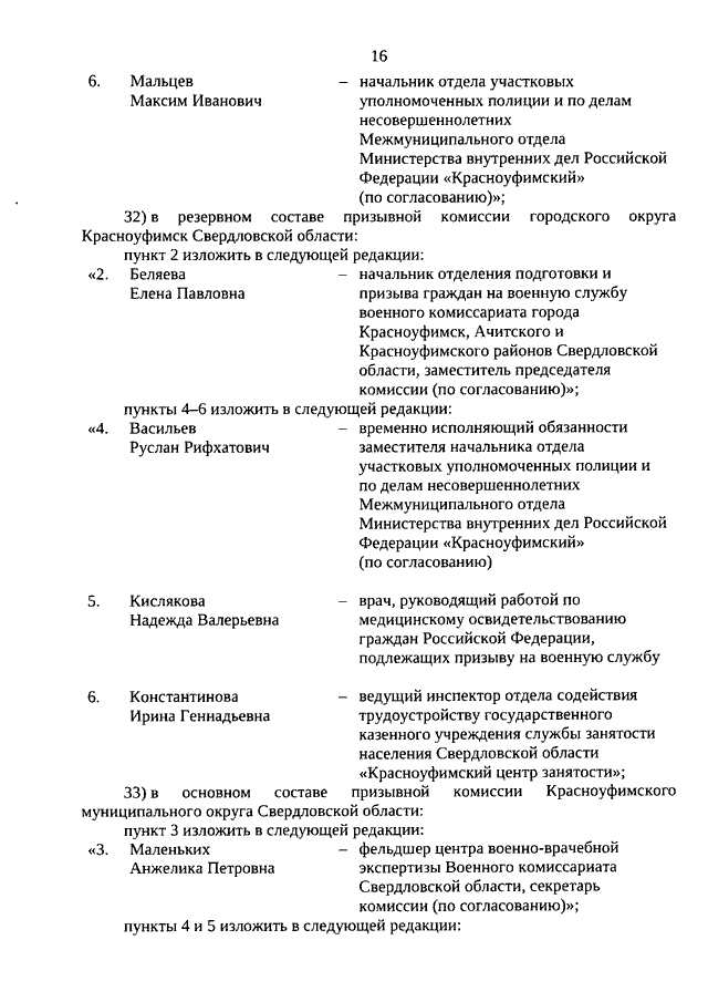 Указ Губернатора Свердловской области от 06.03.2026 N 85-УГ "О внесении изменений в составы призывных комиссий (основные и резервные) в муниципальных районах, муниципальных и городских округах, расположенных на территории Свердловской области, утвержденные Указом Губернатора Свердловской области от 24.09.2025 N 366-УГ"