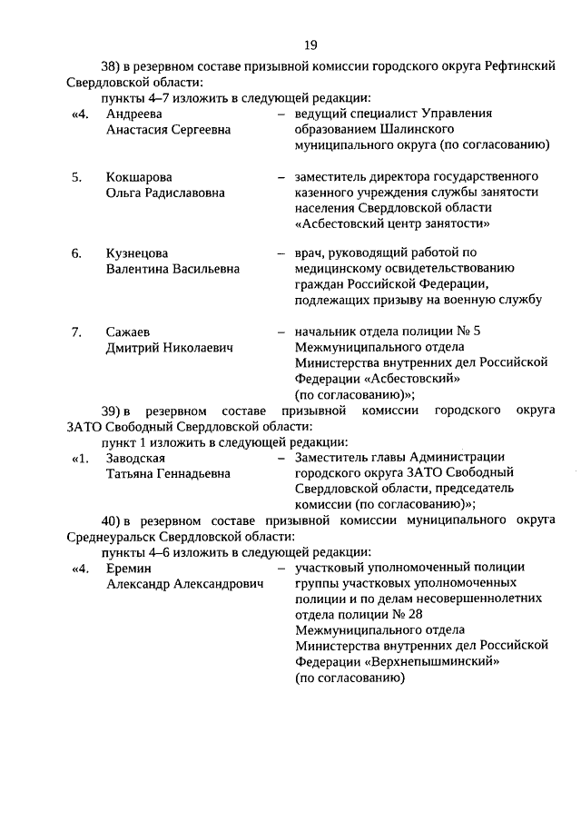 Указ Губернатора Свердловской области от 06.03.2026 N 85-УГ "О внесении изменений в составы призывных комиссий (основные и резервные) в муниципальных районах, муниципальных и городских округах, расположенных на территории Свердловской области, утвержденные Указом Губернатора Свердловской области от 24.09.2025 N 366-УГ"