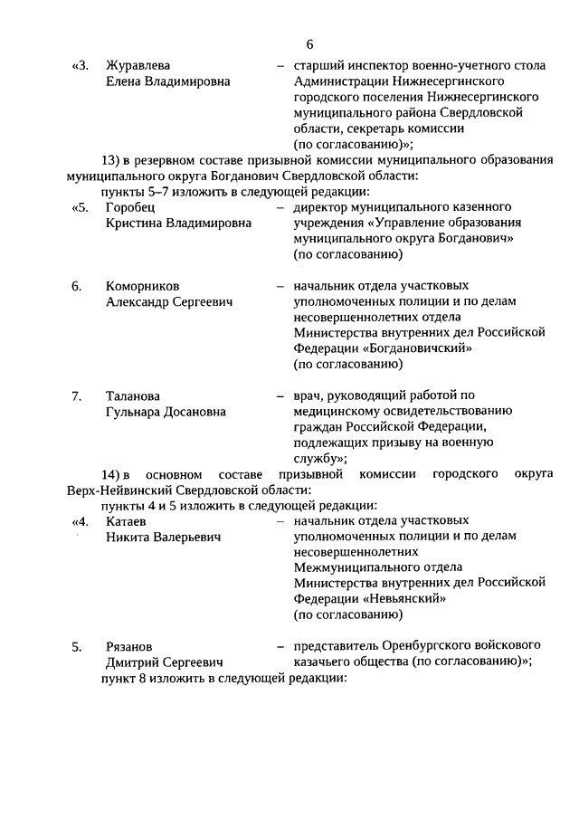 Указ Губернатора Свердловской области от 06.03.2026 N 85-УГ "О внесении изменений в составы призывных комиссий (основные и резервные) в муниципальных районах, муниципальных и городских округах, расположенных на территории Свердловской области, утвержденные Указом Губернатора Свердловской области от 24.09.2025 N 366-УГ"
