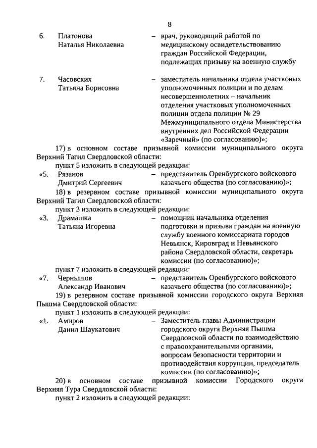 Указ Губернатора Свердловской области от 06.03.2026 N 85-УГ "О внесении изменений в составы призывных комиссий (основные и резервные) в муниципальных районах, муниципальных и городских округах, расположенных на территории Свердловской области, утвержденные Указом Губернатора Свердловской области от 24.09.2025 N 366-УГ"
