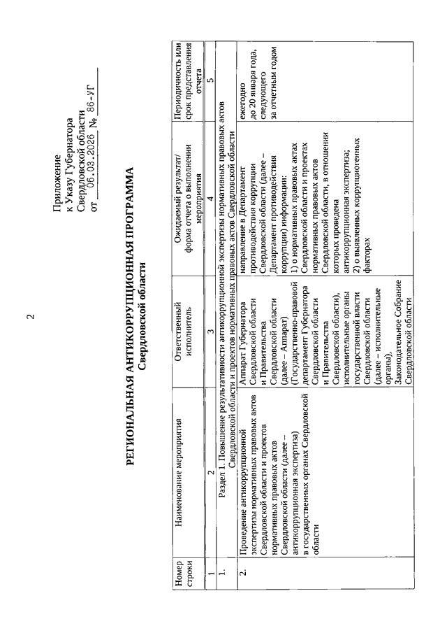 Указ Губернатора Свердловской области от 06.03.2026 N 86-УГ "О внесении изменений в региональную антикоррупционную программу Свердловской области, утвержденную Указом Губернатора Свердловской области от 12.05.2025 N 168-УГ"