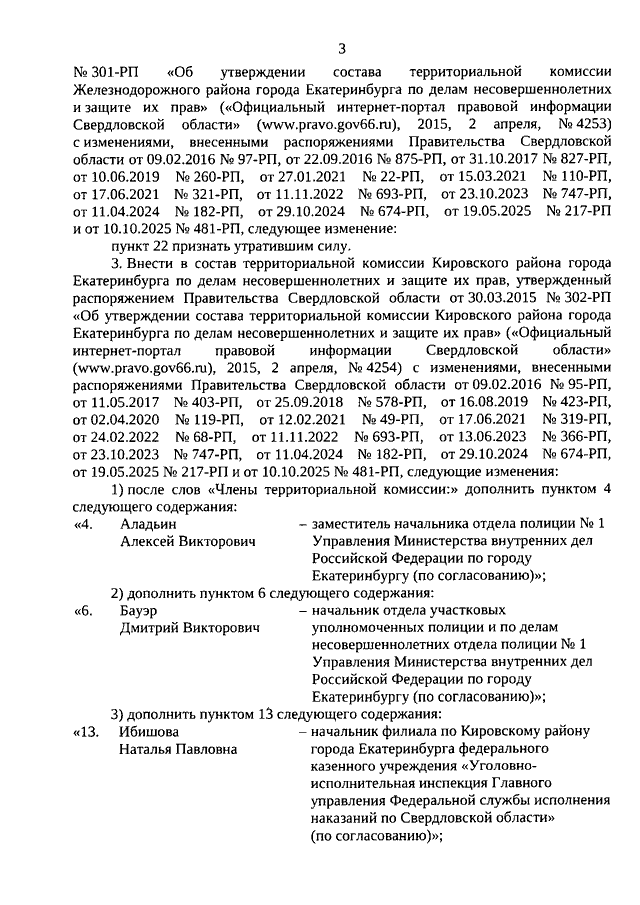 Распоряжение Правительства Свердловской области от 10.03.2026 N 103-РП "О внесении изменений в отдельные правовые акты Правительства Свердловской области в сфере организации деятельности территориальных комиссий по делам несовершеннолетних и защите их прав, осуществляющих деятельность на территории городского округа муниципального образования "город Екатеринбург"