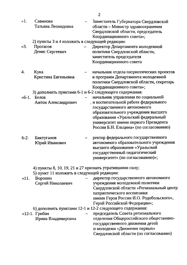 Указ Губернатора Свердловской области от 13.03.2026 N 89-УГ "О внесении изменений в Указ Губернатора Свердловской области от 11.07.2013 N 361-УГ "О Координационном совете по патриотическому воспитанию граждан в Свердловской области"