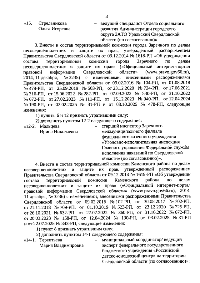 Распоряжение Правительства Свердловской области от 19.03.2026 N 116-РП "О внесении изменений в отдельные распоряжения Правительства Свердловской области в сфере организации деятельности территориальных комиссий по делам несовершеннолетних и защите их прав"