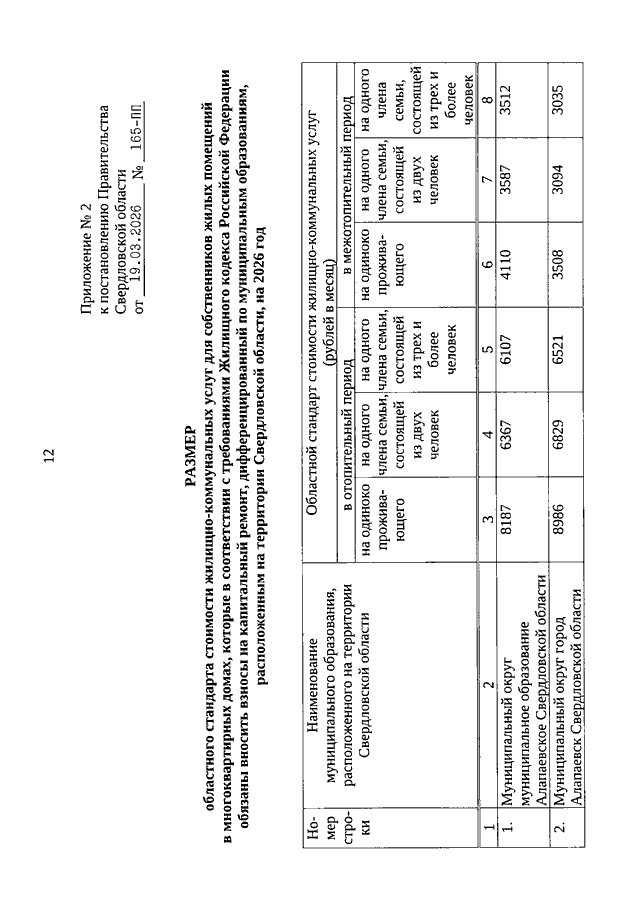 Постановление Правительства Свердловской области от 19.03.2026 N 165-ПП "Об областном стандарте стоимости жилищно-коммунальных услуг на 2026 год"