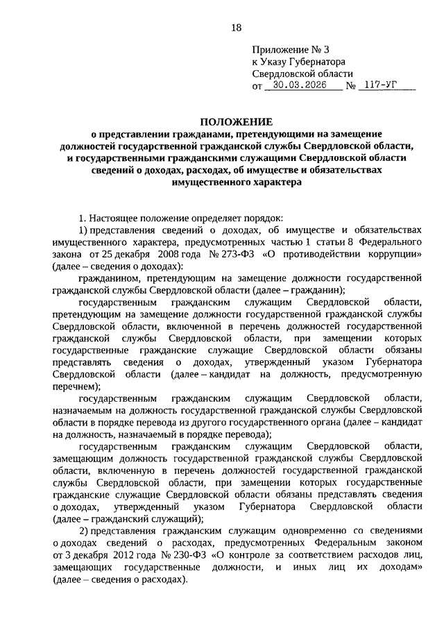 Указ Губернатора Свердловской области от 30.03.2026 N 117-УГ "О внесении изменений в отдельные правовые акты Губернатора Свердловской области и признании утратившими силу отдельных правовых актов Губернатора Свердловской области в сфере противодействия коррупции"